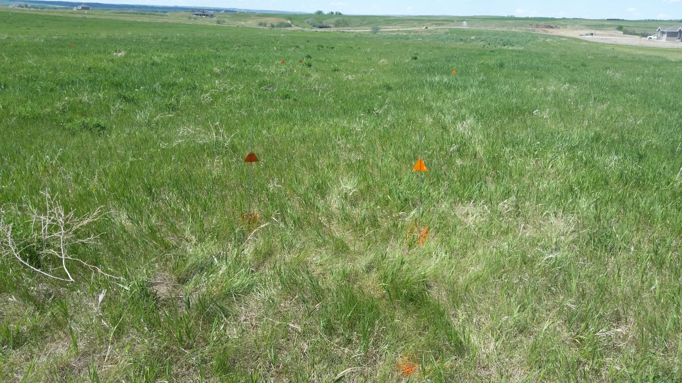 Lot is marked with small fence posts (orange paint) ... shows locations