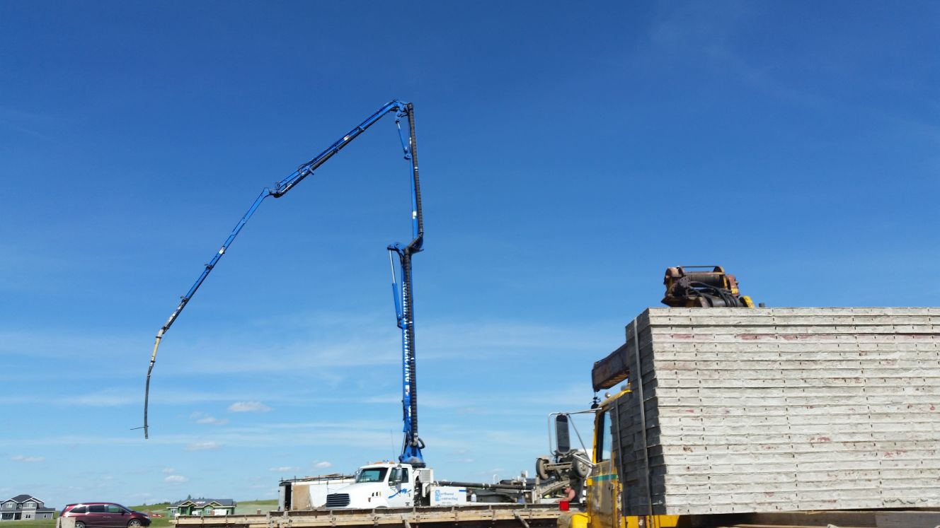 Truck that pours concrete through the tube.