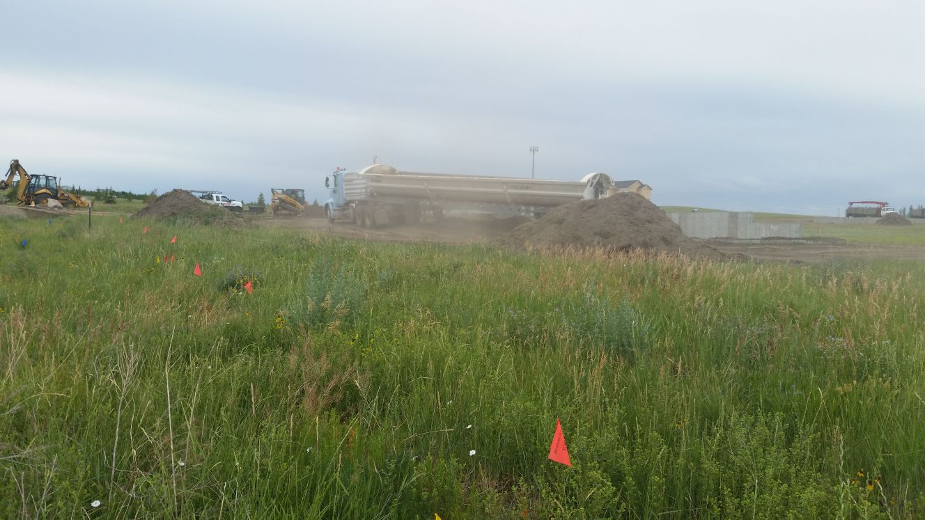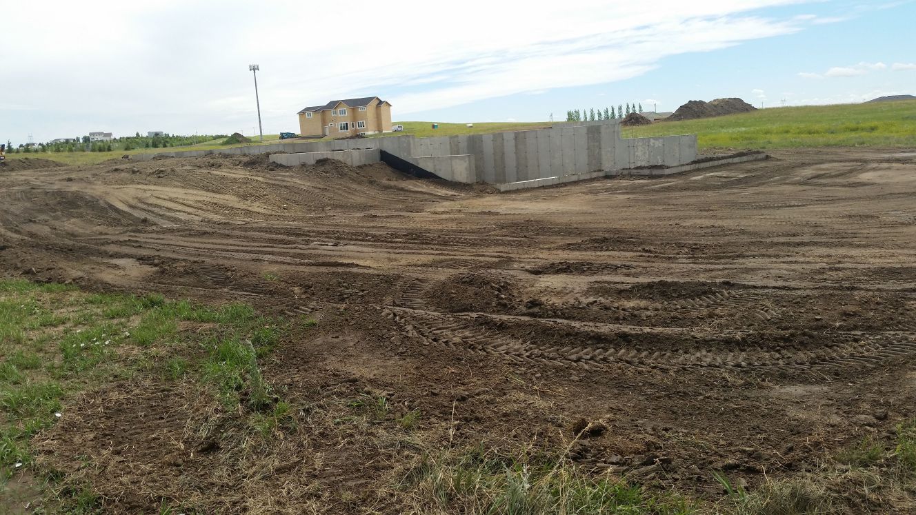 Backfill starting to cover much of concrete and fill empty space between the