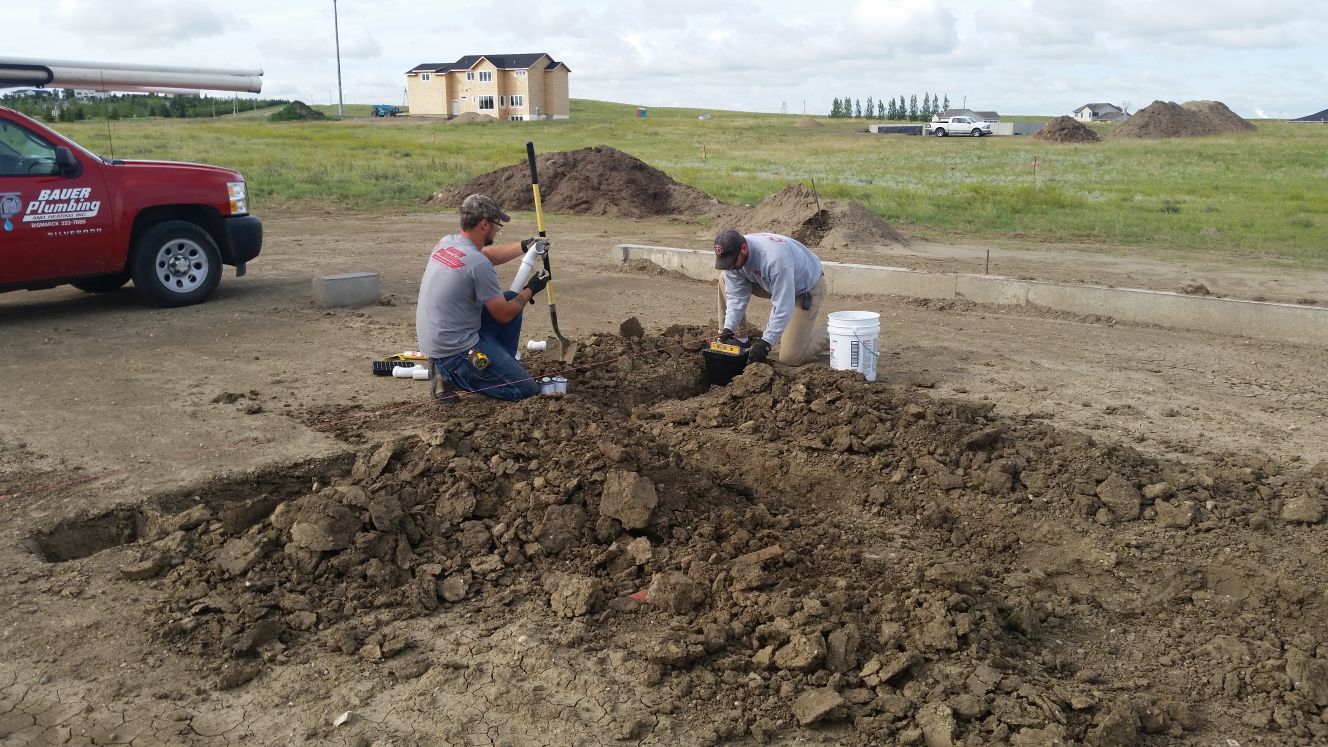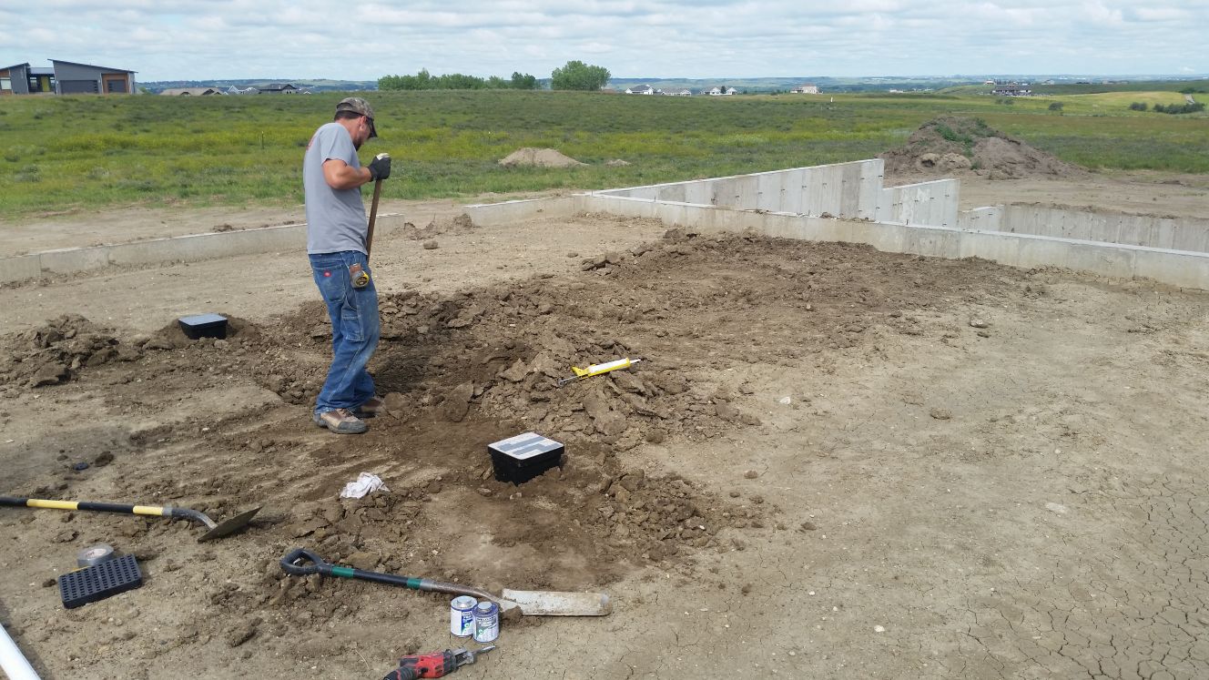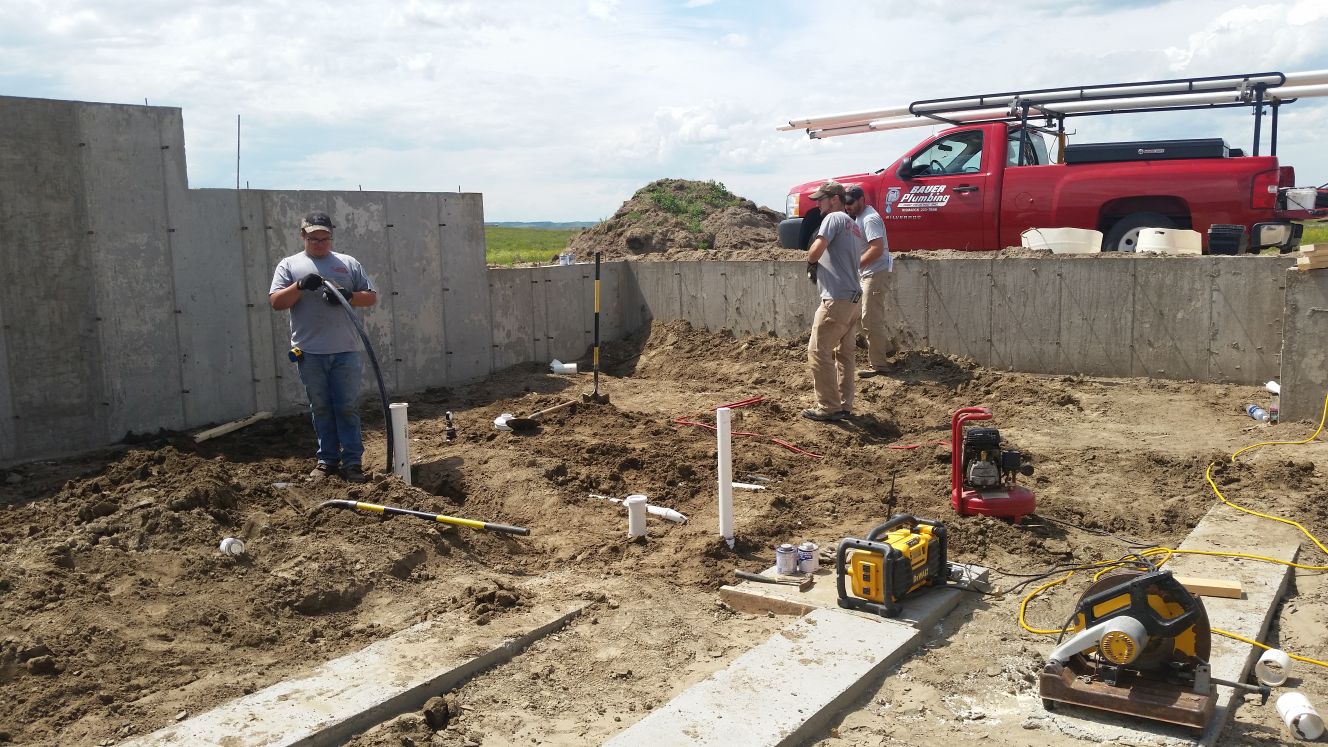 Digging trenches (in the dirt below the basement floor) for the plumbing. All sinks,