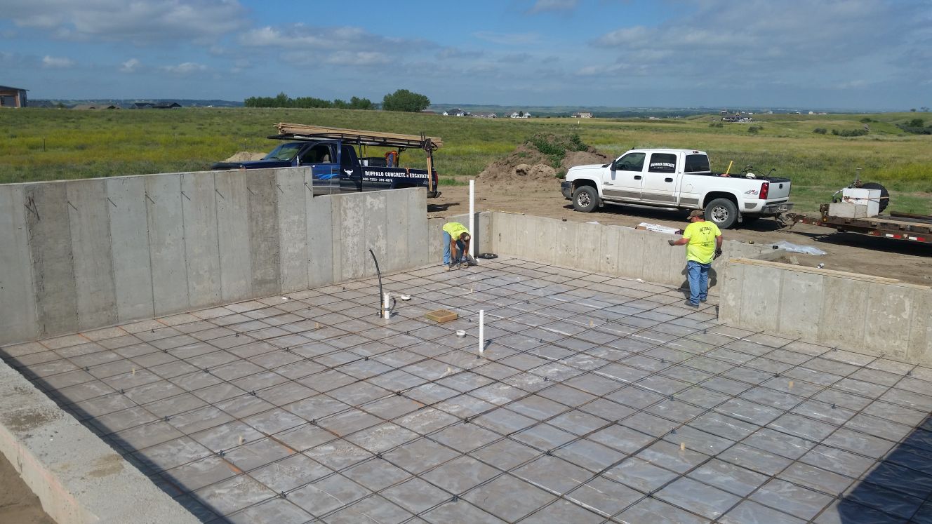 protection) and rebar (long metal rods crisscrossing to make the floor stronger)