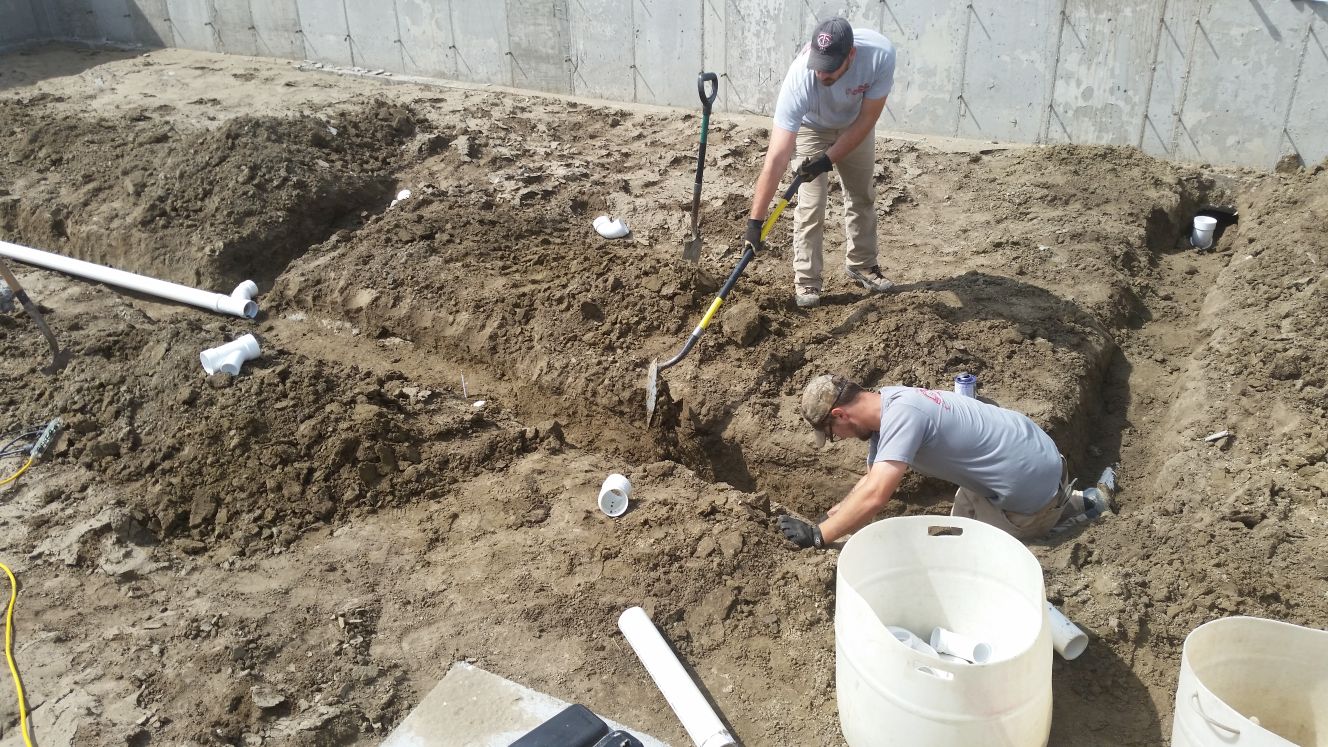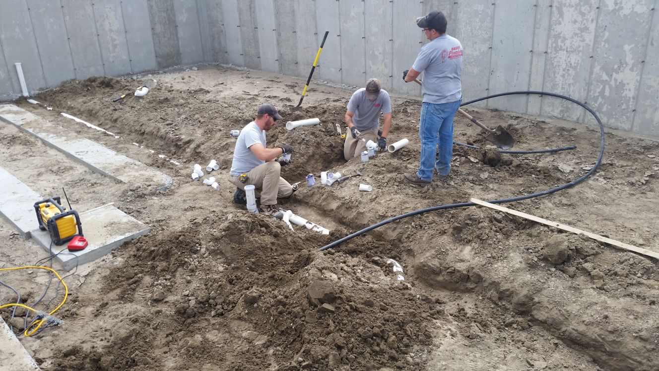 Digging trenches (in the dirt below the basement floor) for the plumbing. All sinks,