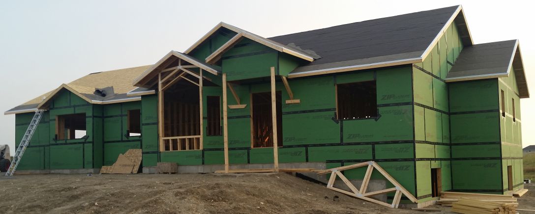 Those green wood panels are special (Zip). Taped together at the seams (black strips),